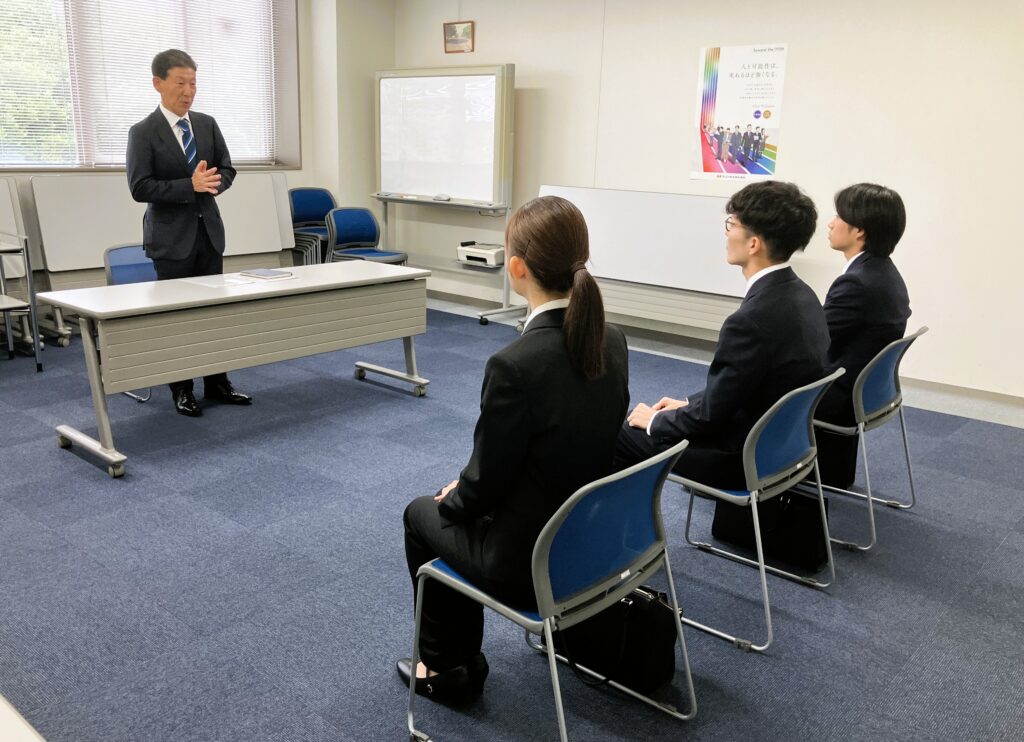 内定者の3名は、緊張した面持ちで真剣に耳を傾けながらも、最後には和やかに会話を交わしていました。