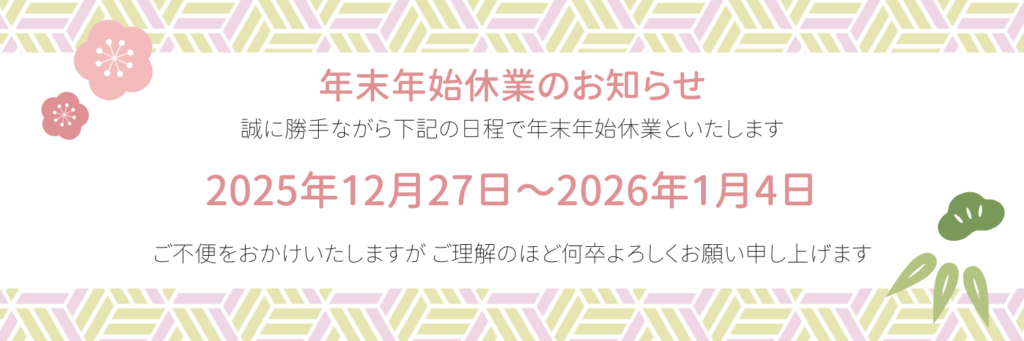 年末年始休業のご案内
